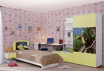 Модульная серия Бьянка удачно впишется и в детскую, и в подростковую комнату. Возможность менять постеры на фотографии и собственные рисунки сделает интерьер неповторимым. Разнообразие оригинальных цветовых решений фасадов позволят сделать комнату оригинальной и интересной. Ребенку обязательно понравиться, что декоративные рисунки располагаются не только на вместительном двухстворчатом шкафу (модуль 8), но и на спинке кровати (модуль 5), что придает законченность общему интерьеру комнаты. Так же в модульную серию входит удобный письменный стол (модуль 6), оригинальные тумбочки (модуль 4), позволяющие сделать спальню ребенка максимально функциональной.