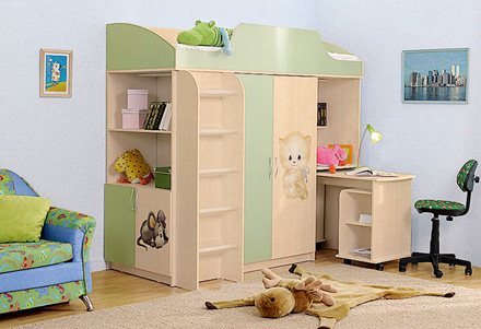 Функциональная модульная серия для детской комнаты "Джерри" позволит подчеркнуть индивидуальность ребенка, выделить зону отдыха, игровую и учебную зоны. При создании детской использованы интересные конструкторские находки: стол с полкой для монитора, навесная секция с дверкой на роликовом механизме, подкроватные ящики для постельных принадлежностей, угловой шкаф, удобные стеллажи.
