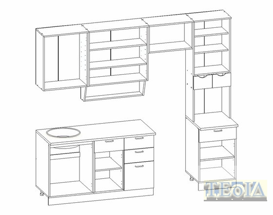 Столешница - нераздельная (общая для нижних шкафов)