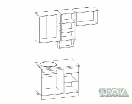 Столешница - нераздельная (общая для нижних шкафов).