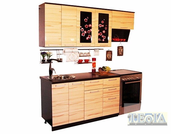 Кухня «Сакура - 2» при достаточной компактности обладает повышенной функциональностью В частности, по сравнению с кухней  «Сакура - 1» увеличена рабочая поверхность стола, добавлено 2 выдвижных ящика,  большой ящик-метабокс для крупных кастрюль и сковород.  По желанию заказчика кухня доукомплектовывается карнизом цвета «венге».  Кухня «Сакура - 2» изготавливается в левом и правом вариантах (на фото - левый вариант).   Технические характеристики:   Комплектация: Сушка с поддоном, открытая полка для специй и глубокая врезная мойка. Размеры ДхВхГ: Верх:2000 x 986 x 330 Низ: 1400 x 860 x 600 Цвет: Фасады - бук-капучино, каркасы - венге