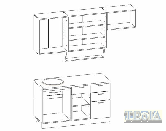 Столешница - нераздельная (общая для нижних шкафов).