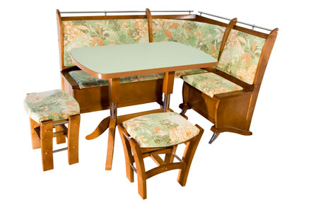 Материал - массив березы, столешница ЛДСП облицована кромкой ПВХ. Размеры стола:1000х600 высота 750, Размеры дивана:1500х1040 высота 980 (450).