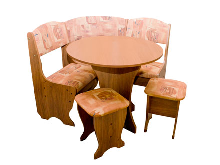 Материал: ЛДСП, Кож/зам, ткань (жокард). Скамья угловая(824*1010*1010), стол обеденный(720*780*780), табурет(420*320*320). Расцветки: ольха, дуб, мрамор.