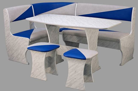 Корпус-ЛДСП, Обивка-кож/зам, Размеры: (1500*800*1060) Цвет: Ольха, Бук, Орех, Мрамор, Пепел Комплектация: стол+скамья+2 банкетки