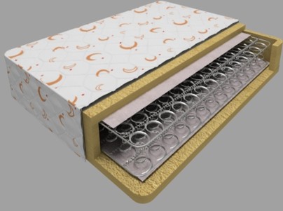 Состав: Чехол из бязи, стеганной на синтепоне Пенополиуретан,Термовойлок, Пружинный блок «Боннель», Пенополиуретан по периметру.