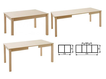 Стол снабжен двумя вставками (хранятся отдельно). Безцарговый механизм обеспечивает столу максимальную надежность и позволяет превратить его в стол на 12-14 посадочных мест за счет регулирования размеров стола при помощи вставок. Механизм рассчитан на нагрузку до 30 кг даже при максимальном разложении. Стол комплектуется подстольем из массива.