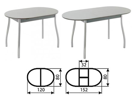 Столы этой серии имеют компактный размер, подходящий для малогабаритных помещений. Стол раскладывается за счет вставки с механизмом «бабочка» (хранится внутри стола), что позволяет приобрести при желании пару посадочных мест. Подстолье хромированное.