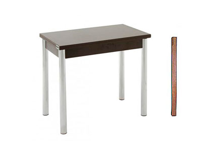 Стол с ламинированной столешницей изготовлен из высококачественной 16 мм ДСП (древесно-стружечная плита) производства России. ДСП ламинировано финишной пленкой различных расцветок производства Германии. Столешница стола из ЛДСП окантована кромкой ПВХ (поливинилхлорид) толщиной 1 мм (по итальянскому стандарту). В местах стыка столешницы со вставкой - кромка толщиной 0.45 мм. Производитель кромки ПВХ - Япония.