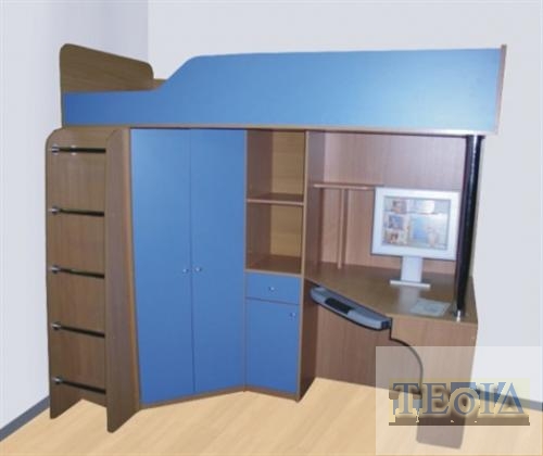 Длина-2032, глубина-1258, высота-1920 мм Спальное место-1900х800 Выпускается в 2-х вариантах: стол справа и «зеркальная» стол слева. Внутри шкафа - штанга и полочки. Варианты расцветок: светлый бук+синий (как на фото),  светлый бук+лайм(желто-зеленый